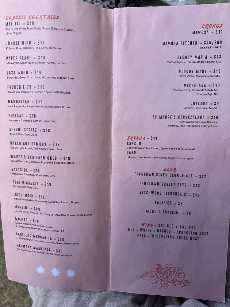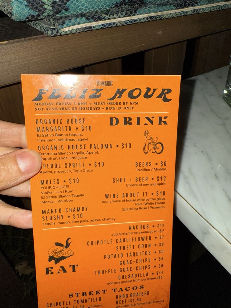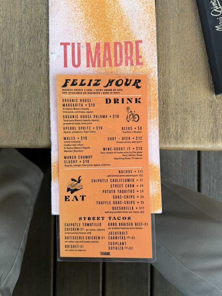 The restaurant offers exceptional utility with vegan and vegetarian choices, outdoor seating, and thoughtful details like compostable packaging and gender-neutral restrooms. Whether you’re grabbing a quick dinner or celebrating a special occasion, Tu Madre has something for everyone.
